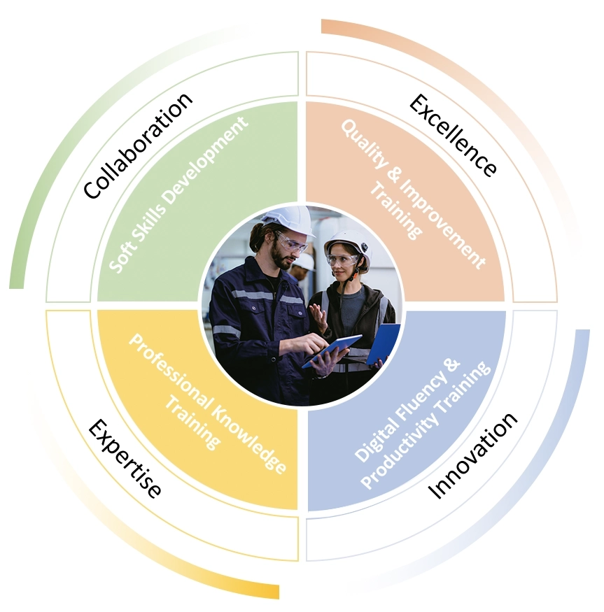 Employees are encouraged to engage in e-learning for continuous self-improvement — anytime, anywhere, at their own pace.
